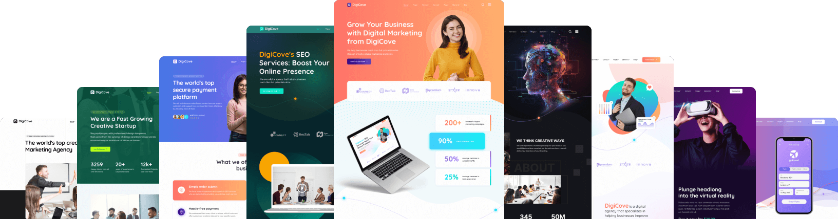 With the Digicove, you can easily create your own complete website. The inner pages have been optimally designed and arranged so that you can quickly and easily adjust your website to your needs.
