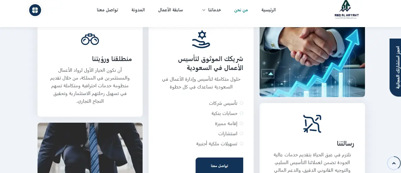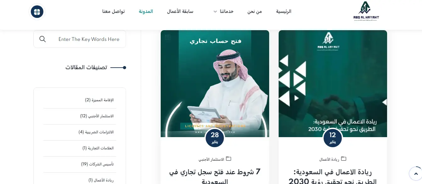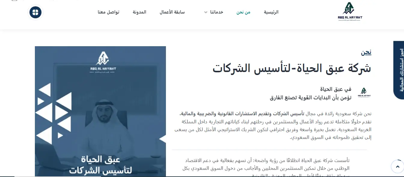 تصميم وورد بريس بشكل مميز لشركة عبق الحياة لتأسيس الشركات والاستثمار في السعودية