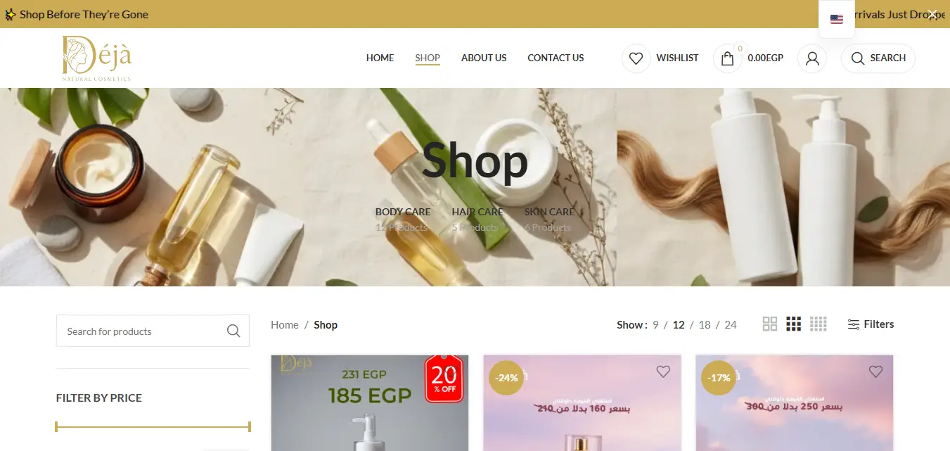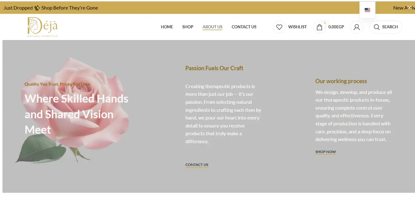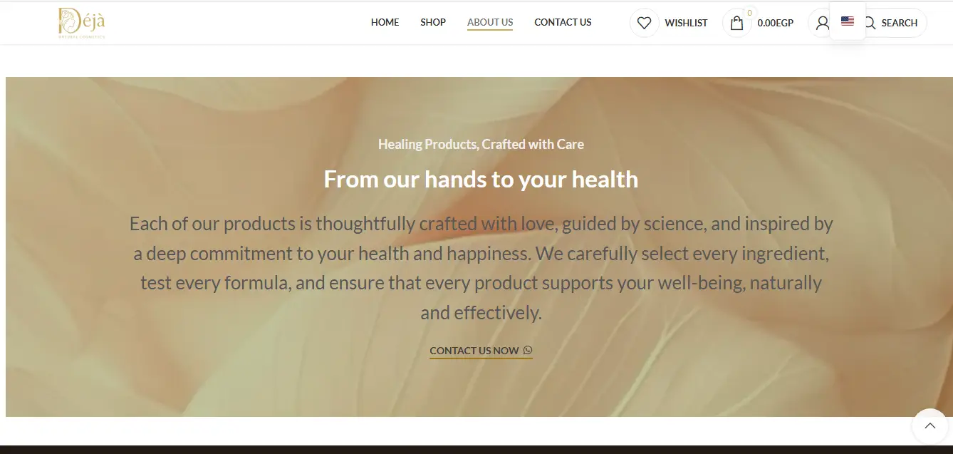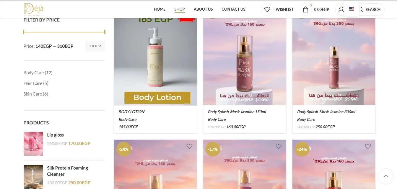 تصميم وورد بريس بشكل مميز لشركة deja لمستحضرات التجميل ومنتجات العناية بالبشرة في مصر