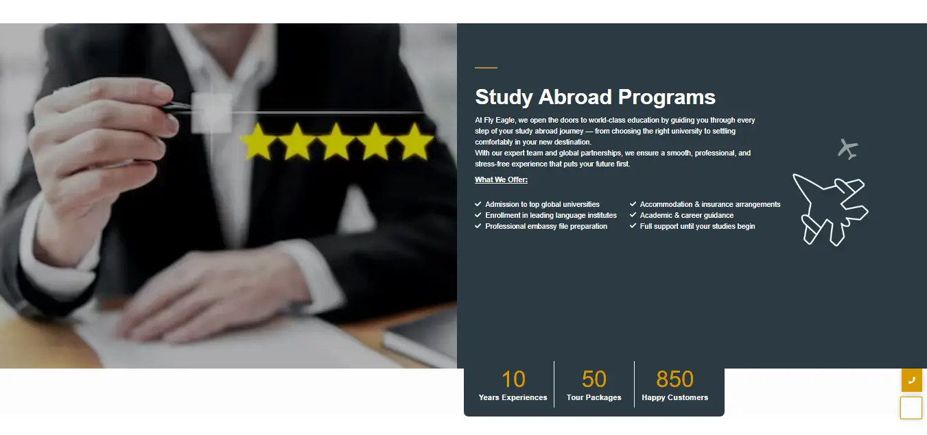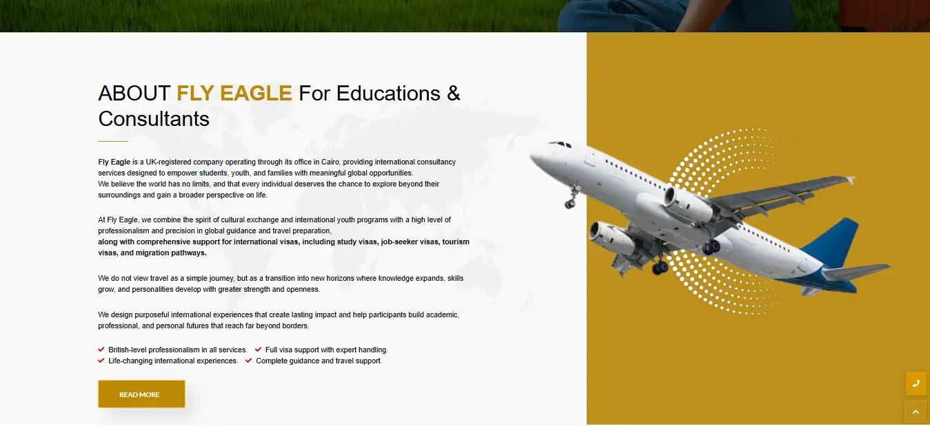 تصميم وورد بريس احترافي لشركة fly eagle للطيران